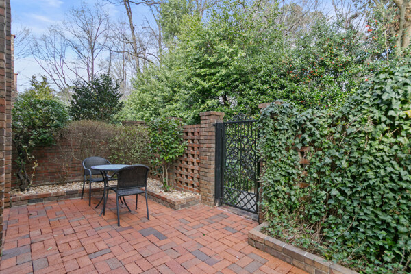 Oh, this is a charmer! Many updates are found in this spacious 2 BR, 2.5 BA end-unit townhome. Recent improvements include beautiful LVP hardwood flooring, lighting, paint, a pantry addition, a primary bathroom remodel, and a newer water heater. The entry foyer welcomes you to a light-filled space with a generously sized dining room. The kitchen features granite countertops with tile backsplash, newer appliances, and a great pantry space. From the kitchen, you have a view of the family room and the private outdoor courtyard. Options abound with the space of the family room, which is elevated with a brick fireplace and surrounding built-ins. Two sets of French doors lead to a spacious brick patio/courtyard where you can enjoy entertaining, coffee, cocktails, and overall enjoyment of the private outdoor space. ** Upstairs, you'll find a continuation of the new flooring, a large primary suite, a refreshed secondary bath, a nice-sized second bedroom, and a walk-in closet which could serve as a small nook for a workspace. ** The primary bedroom features 2 closets and a beautifully renovated bathroom with a tile shower, a new vanity, tile, and more. The laundry space is conveniently located in the primary suite. The secondary bedroom also has 2 closets and enjoys a view of the neighborhood. ** Olde Ivey Square is a lovely small community tucked conveniently off Piedmont and Old Ivy Lane. Just .5 miles from Sarah Rawson Smith Elementary and walking distance to shops, restaurants, and other daily conveniences. You'll love it! Check out the interactive floorplan in the virtual tour link.